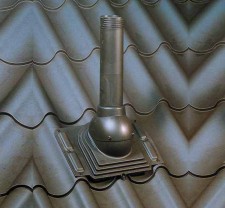 Выход вентиляции из жилого помещения создается вентиляционным каналом круглого сечения (вентиляционной трубой) и проходным элементом, созданным специально для конкретного кровельного материала. Для исключения попадания осадков в систему на вентиляционную трубу надевается специальный колпак – аэратор, который благодаря своей конструкции усиливает тягу воздуха.